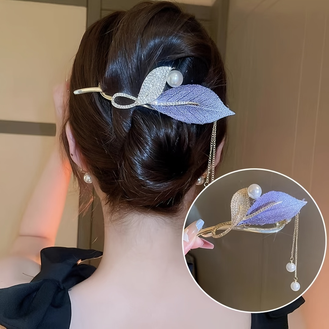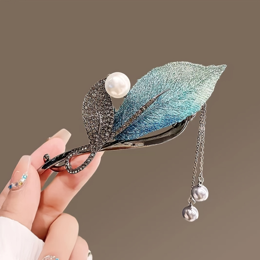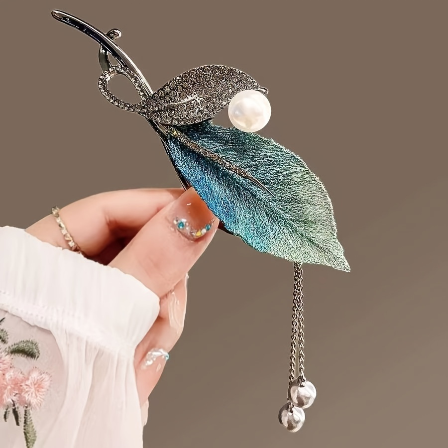 - Product Name: 1 Piece Leaf Tassel Headdress, Rhinestone Pearl Button Hair Clip, Zinc Alloy Handmade Embroidery Hair Accessories, Suitable For Daily Use