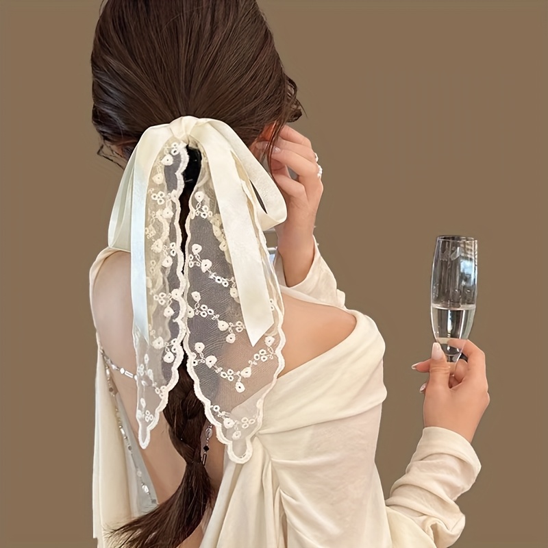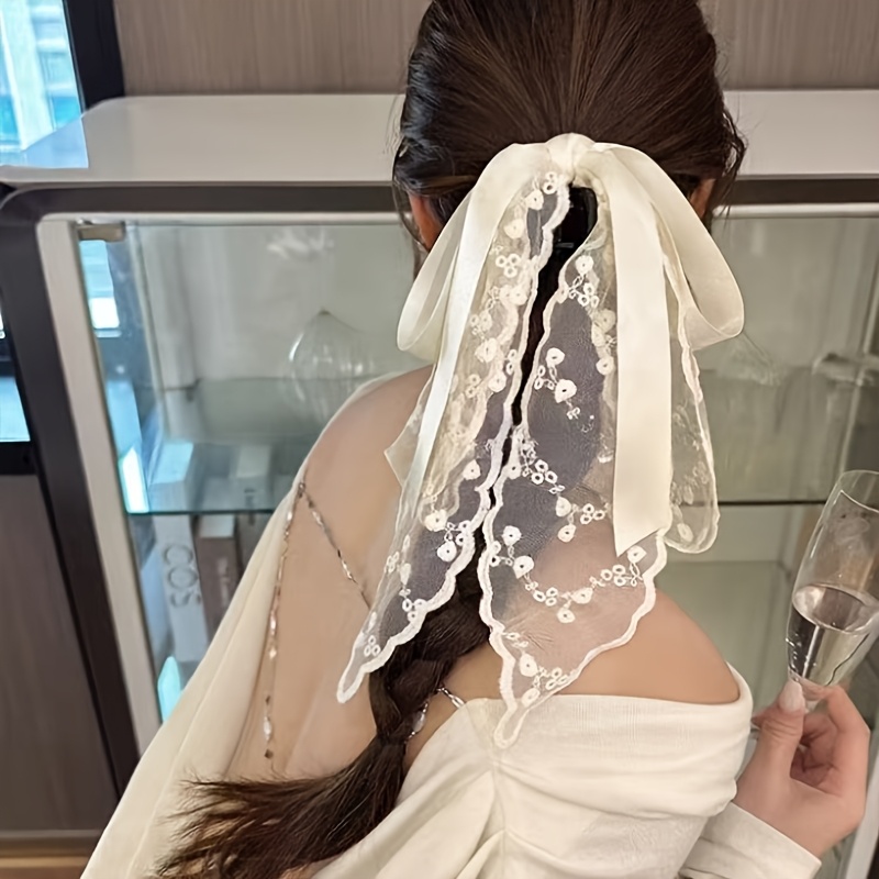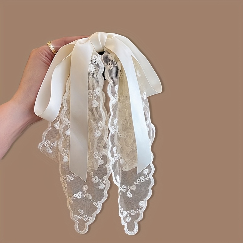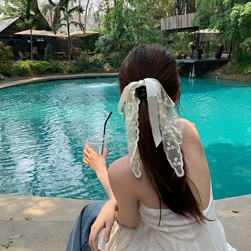 🎀Elegant Lace Ribbon Bow Hair Clip 💕 Floral Pattern Acrylic Accessory for Women & Teens