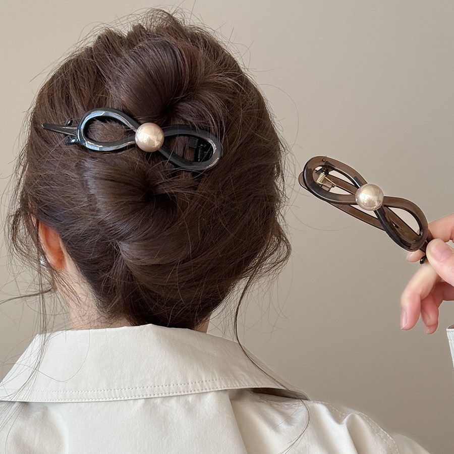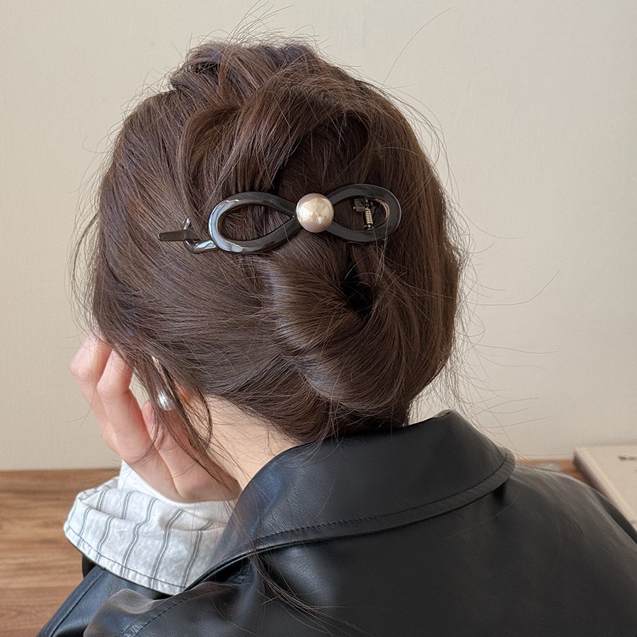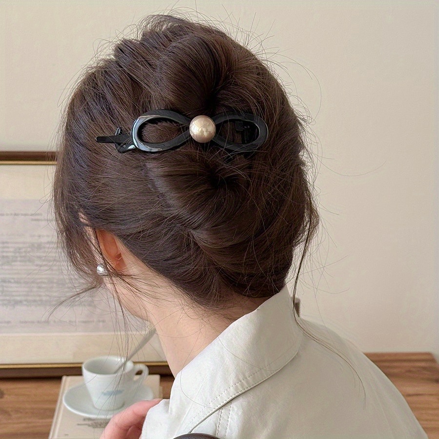 Home>Accessories>Hair Accessories>1pc Large Elegant Bowknot Hair Clip for Women - Sweet & Sophisticated Twisted Hairpin with Black & White Accent, Durable Hair Accessory for Ponytails, Buns, Braids - Wedding, Party, Everyday Hairstyles