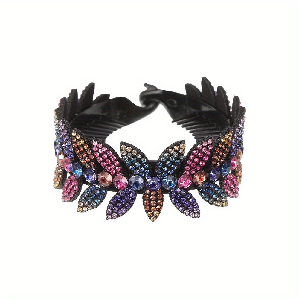 1pc Women's Elegant Rhinestone Leaf Hair Clip - Non-Slip Grip Ponytail Bun Holder, Sparkling Leaf Design Hair Claw for Wedding, Party, Everyday - Perfect Gift for Women (No Feathers), Cute Hair Accessories, Wedding Hairpiece, Vibrant Design
