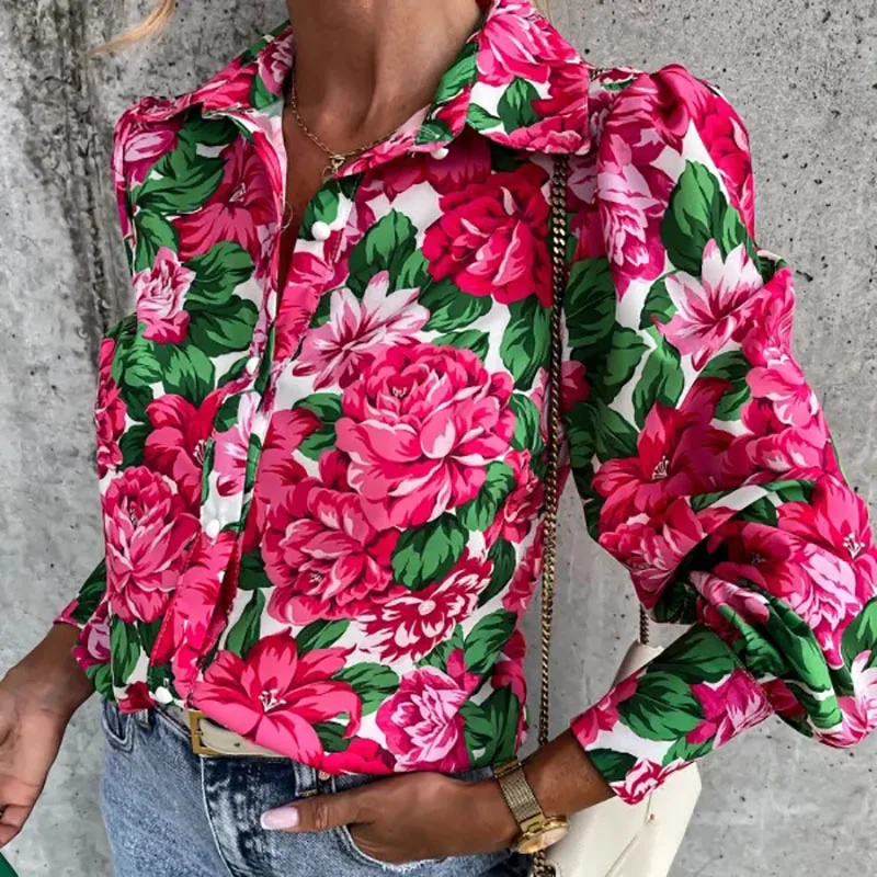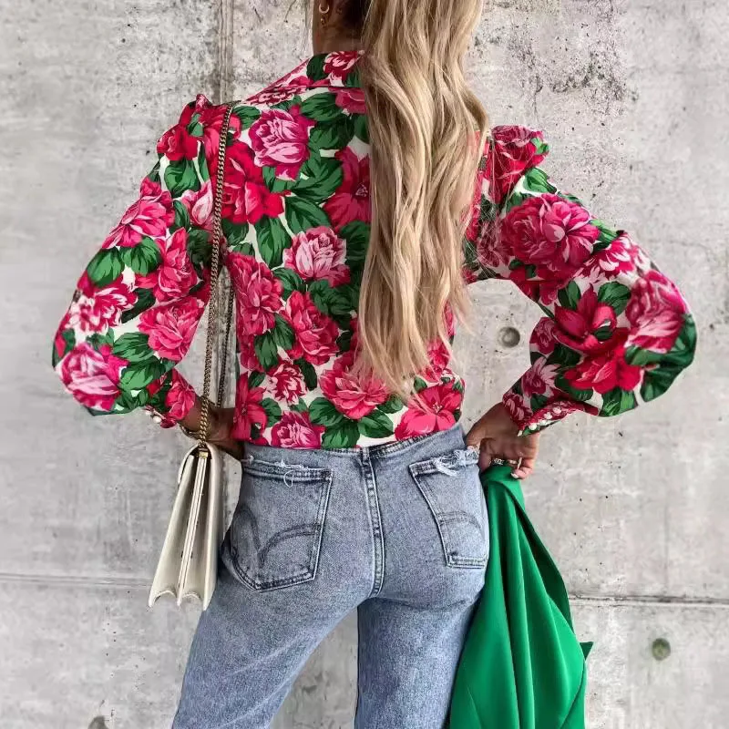 - Product Name: 2025 Elegant Button Spring Shirt Streetwear Autumn New Fashion Flower Print Commuting Top Women Casual Lapel Collar Loose Blouse