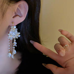 - Product Name: 2pcs Silvery Needle Flower Pearl Tassel Long Earrings, Light Luxury, Niche High-End Design, Elegant Temperament, Retro Fashion Earrings