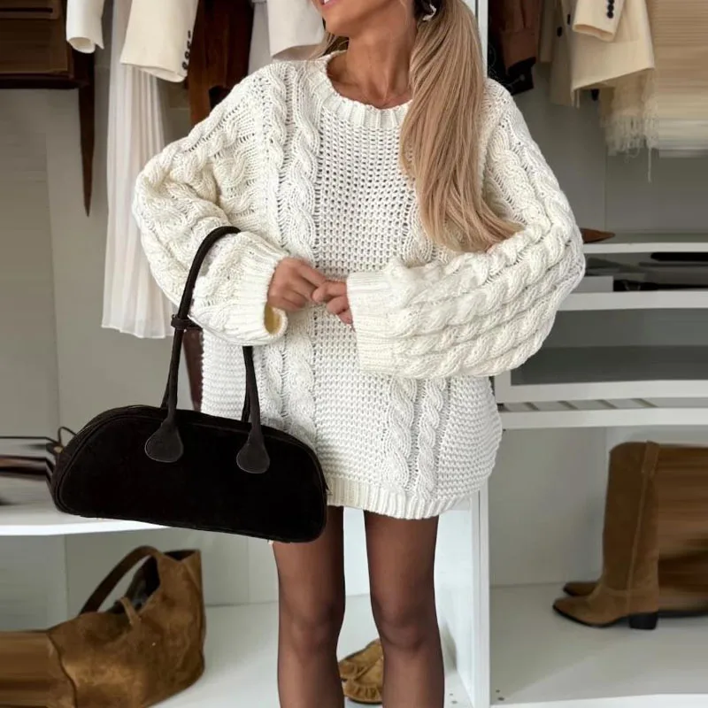 Autumn Fashion Round Neck Pullover Jumper Women's Casual Long Sleeve Loose Knitted Tops Winter Elegant Hollow Out Solid Sweater
