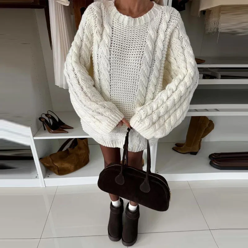 Home>Women's Clothing>Women's Top>Women's Sweater & Cardigans>Autumn Fashion Round Neck Pullover Jumper Women's Casual Long Sleeve Loose Knitted Tops Winter Elegant Hollow Out Solid Sweater