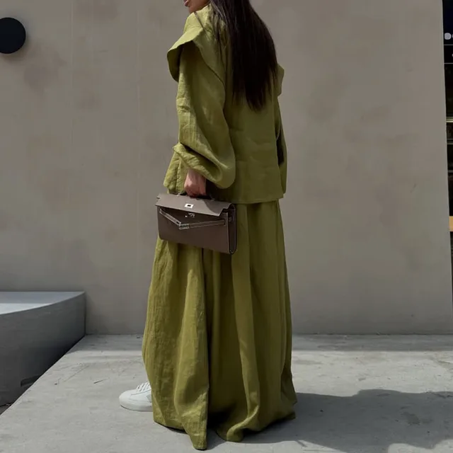 - Product Name: Autumn New Solid Color Loose Women's Two Piece Sets Elegant V-neck Lace Up Tops Set Fashion Design Style Long Sleeve Commute Set