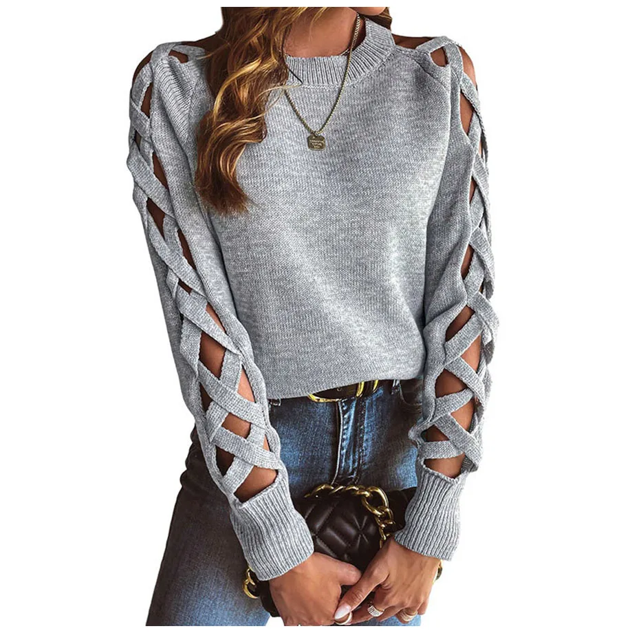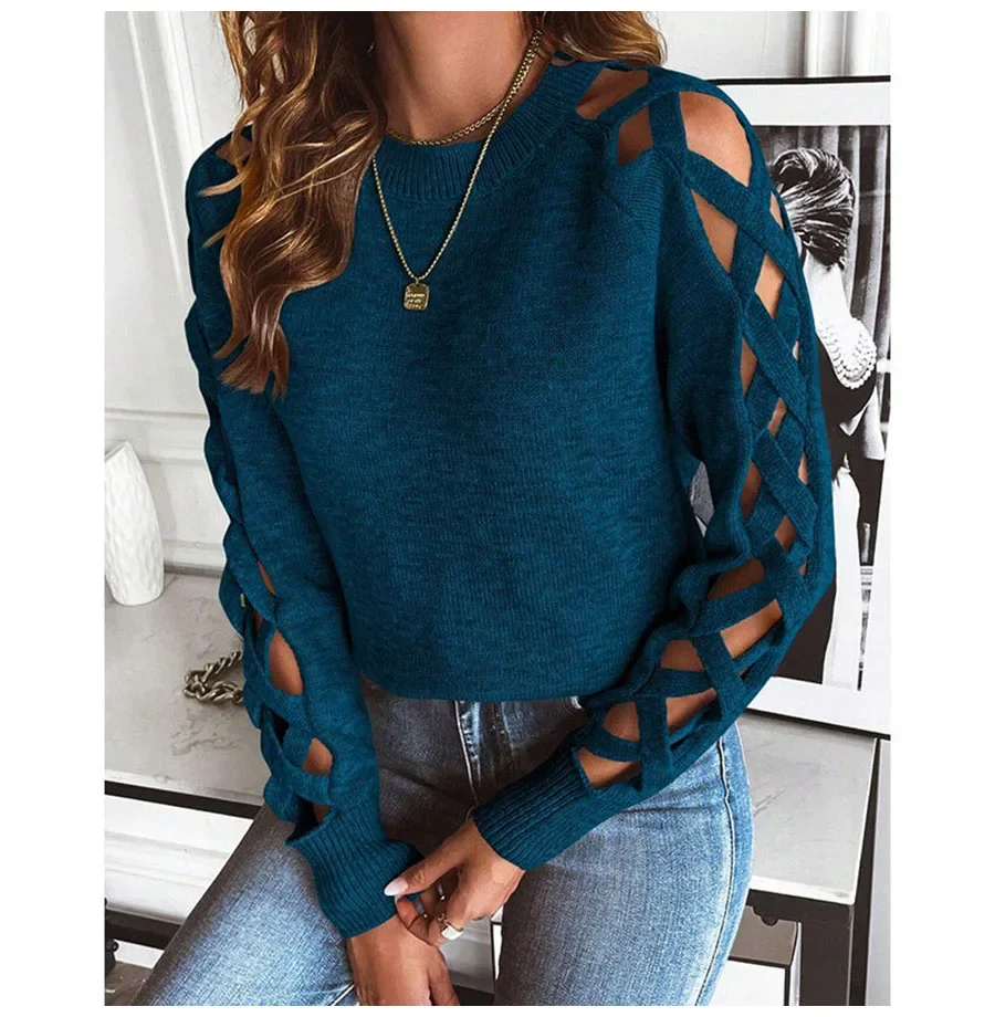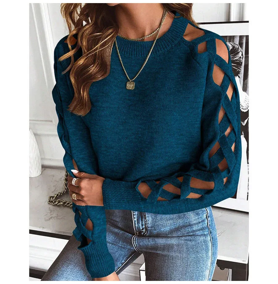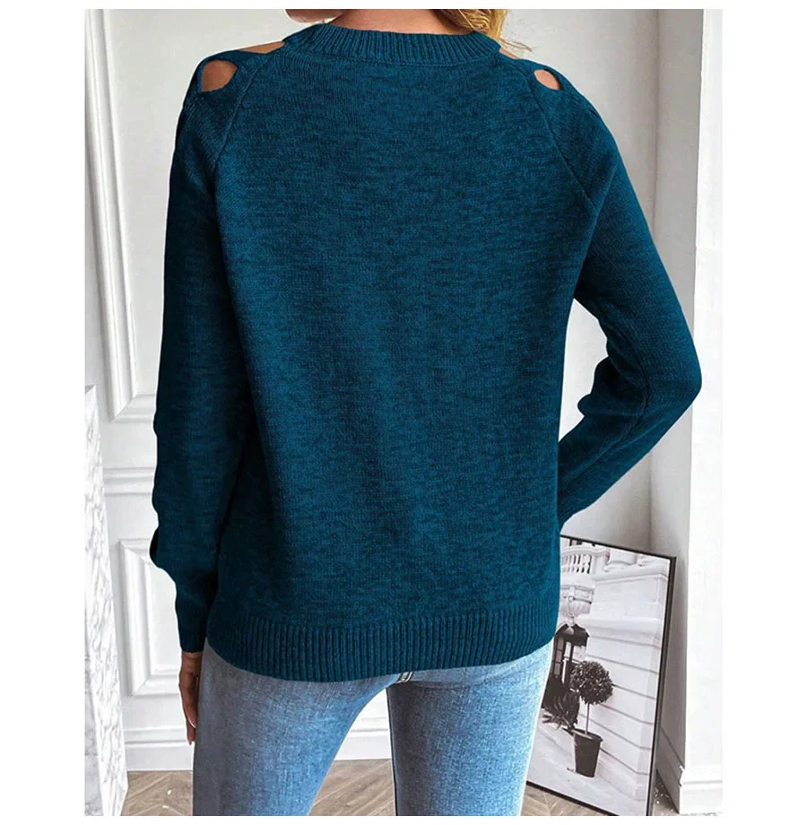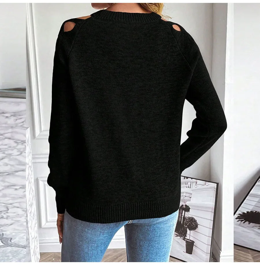 - Product Name: Autumn Winter Women Solid Casual Pullover Sweater Women Fashion Cutout Long Sleeve Knit Crew Neck Pullover Top 2025 New