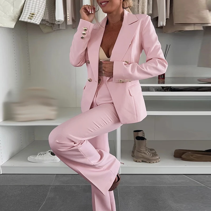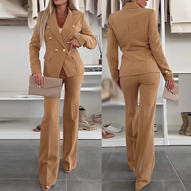 - Product Name: Autumn Women's Lapel Collar Long Sleeved Blazer Suit Elegant Temperament Slim Pants Set Fashion Office Button Design Outfit