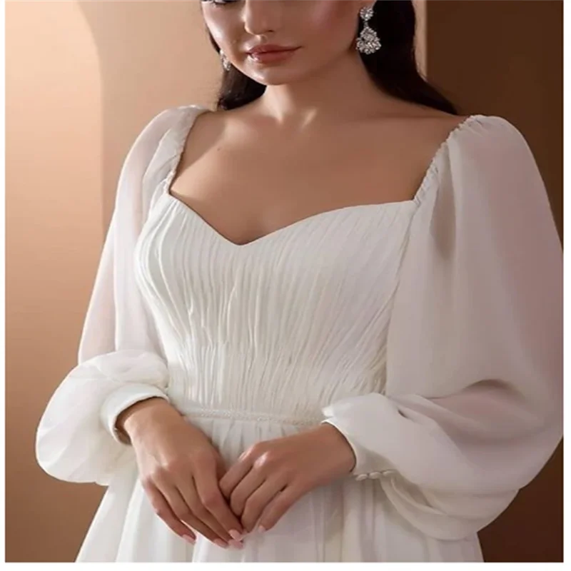 - Product Name: Beach Wedding Beach Vintage Wedding Dresses A-Line Off Shoulder Long Sleeve Court Train Chiffon Bridal Gowns With Pleats Beading
