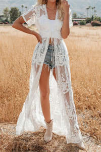 - Product Name: Boho Mesh Embroidery Kimono Cover