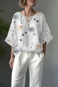 - Tag: Floral , O Neck , Short Sleeve , Pullover , Loose , Casual , Regular , Polyester , Full Print , Regular Sleeve