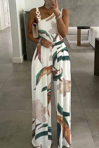 - Tag: Sleeveless , Print , Casual , Patchwork , Polyester , Asymmetrical Collar , Wide Leg