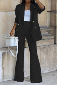 - Product Name: Casual Solid Patchwork Buttons Turn-back Collar Long Sleeve Two Pieces