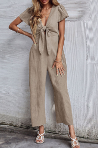 - Product Name: Casual Solid Patchwork V Neck Straight Jumpsuits
