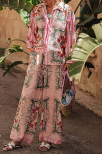 - Tag: Long Sleeve , Loose , Casual , Regular , Polyester , Pocket , Full Print , Two-pieces , Regular Sleeve , Street , Turndown Collar , Wide Leg , Elastic Waist , Floral Print