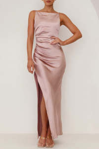 - Tag: Sleeveless , Backless , Solid Color , Elegant , Regular , Slit , Long , Polyester , Ruched