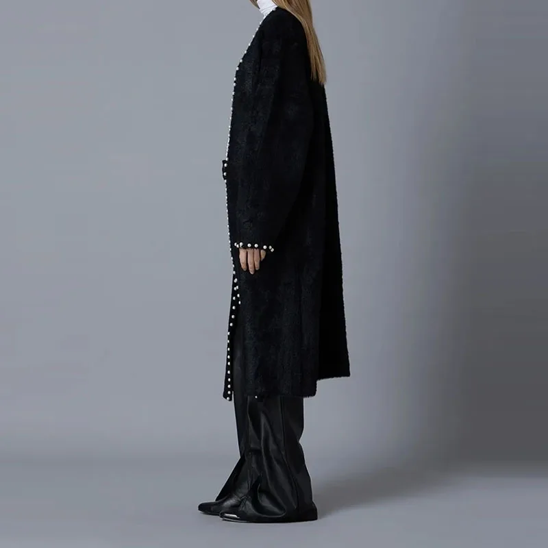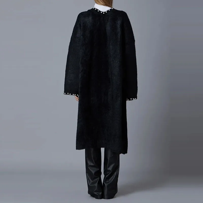 - Product Name: Elegant Beaded Mink Fleece Long Cardigan Autumn Winter Casual Long Sleeve Loose Design Outercoat Women Fashion Solid Knit Coat