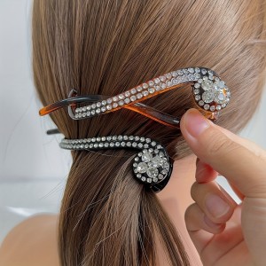 - Product Name: Elegant Crystal Hairpin: Retro Amber One-Word Clasp for Adults