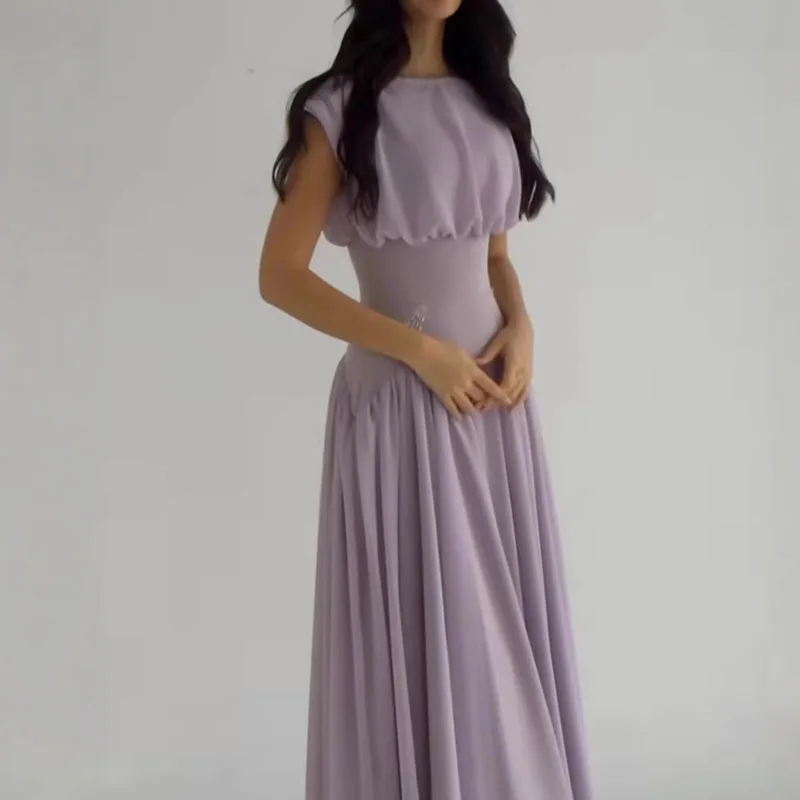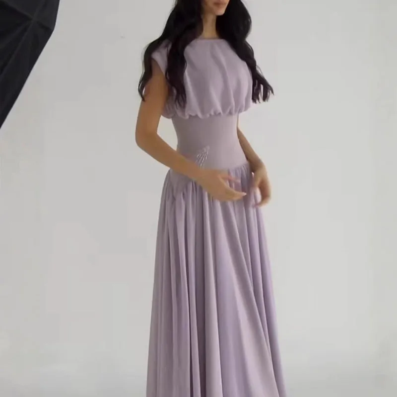 - Product Name: Elegant O-neck Sleeveless Slim Banquet Dress Summer New Chiffon Long Dress for Women Temperament Simple Mesh Pleat Evening Dress