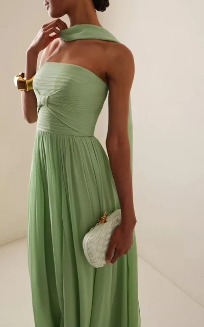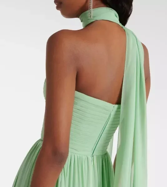 Elegant Strapless Evening Gown For Women Green Chiffon Hollow Out High Waist Long Dress Backless Party Outfit New