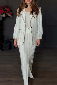Home>Women's Clothing>Women's Top>Two Pieces>Elegant Striped Print Buttons Slit Turn-back Collar Long Sleeve Two Pieces