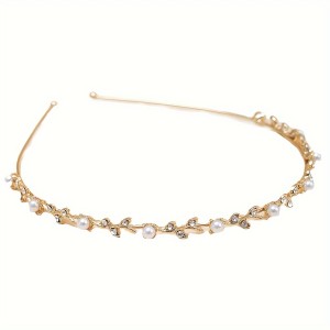 - Product Name: Elegant Sweet Zinc Alloy Hairband with Imitation Pearls and Leaf Design - Single Piece Headband for Dress Up, Solid Color, Non-Feathered Hair Accessory for Daily Wear and Parties