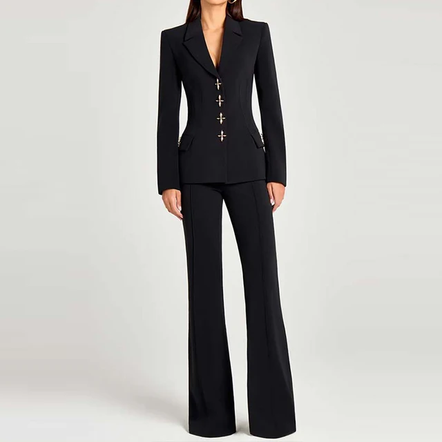 - Product Name: Fall New Office Lady Solid Color Outfits Elegant Long Sleeve V-neck Coat And Wide Leg Pants Sets Fashion Casual Slim Women's Set