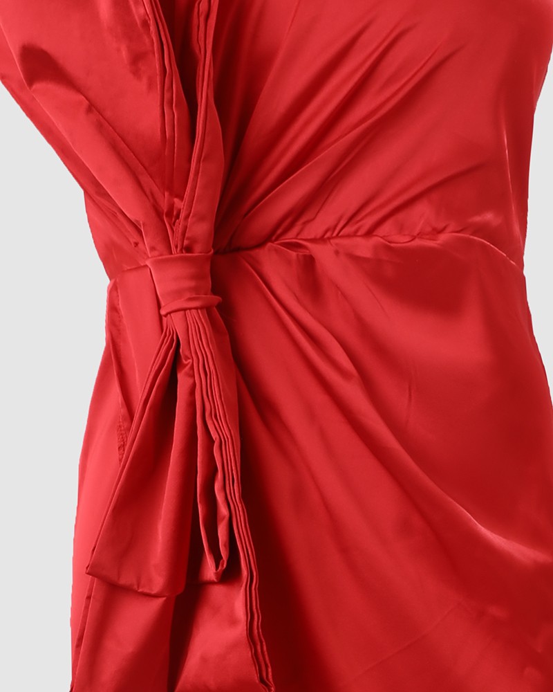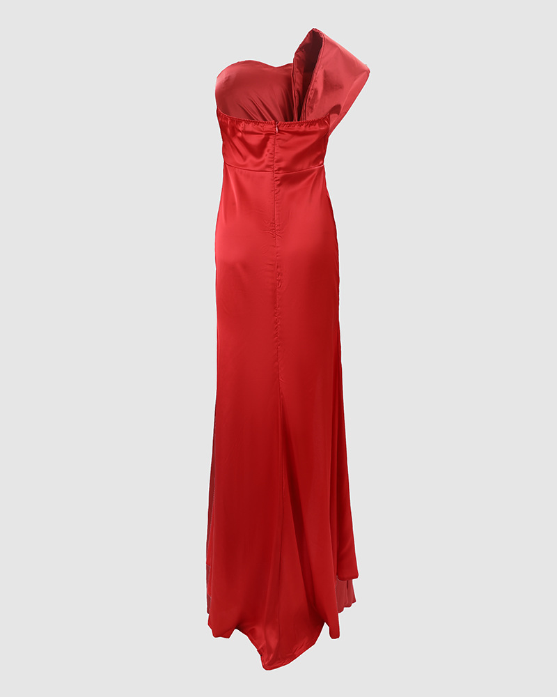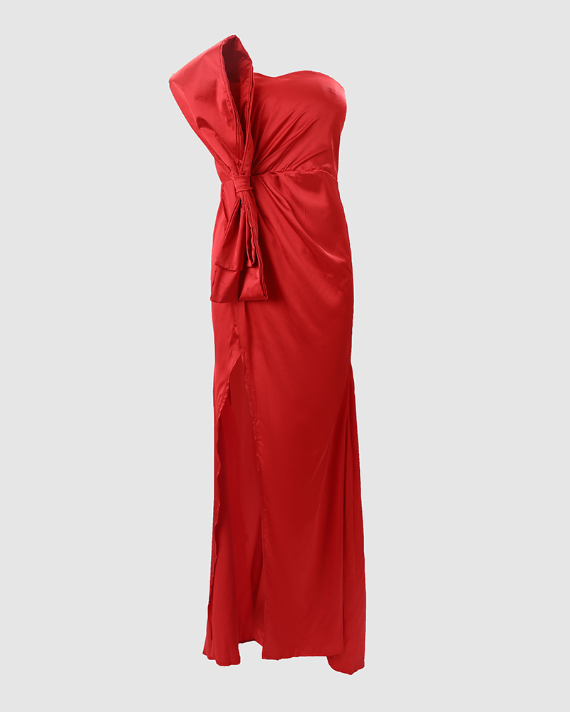 - Product Name: Fashion High Waist Bowknot Solid One Shoulder Strapless Sexy Party Elegant Wedding Guest Dress