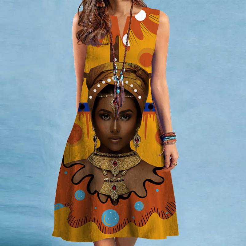- Product Name: Fashion Print V -neck Loose Sleeveless Casual Dress