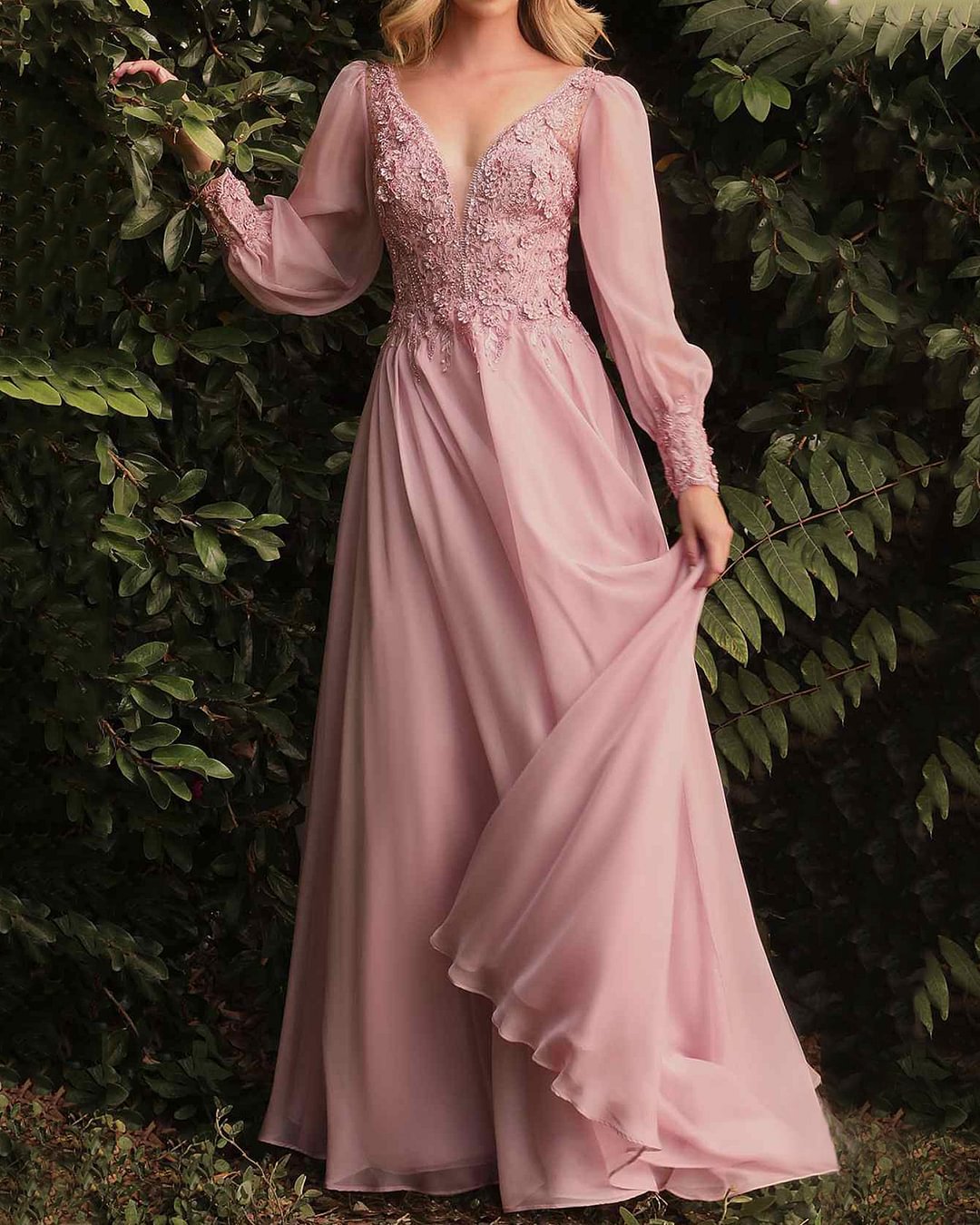 - Tag: Wedding Guest Dresses , Solid , V-neck , Long Sleeve