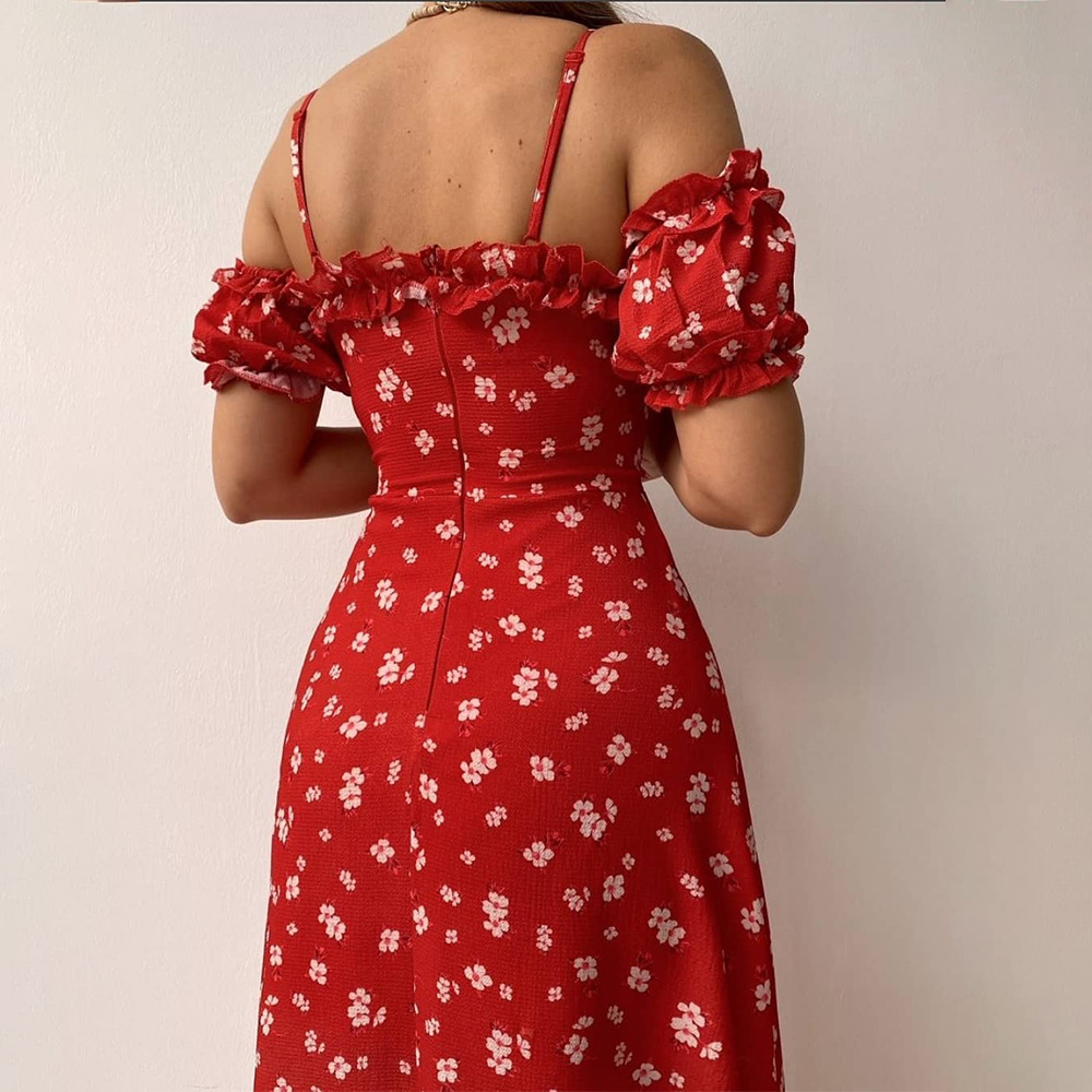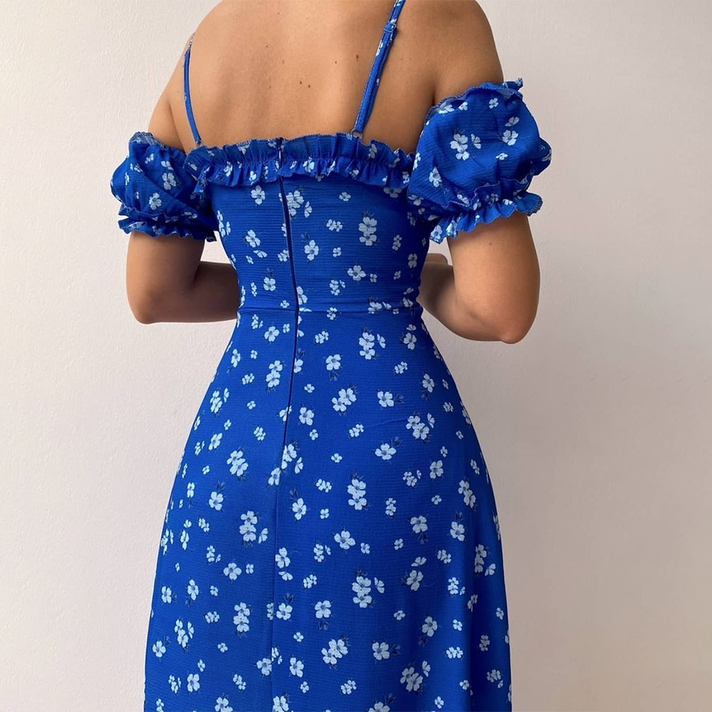 - Product Name: Floral Sling Sexy Spaghetti Strap Split Puff Sleeve Wedding Guest Dresses