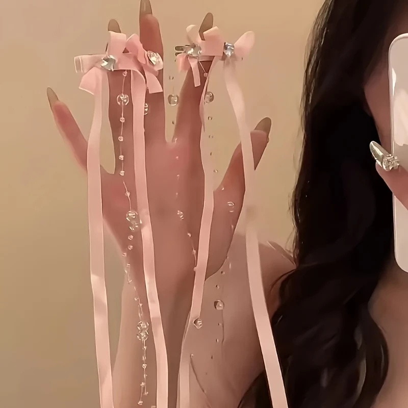 - Product Name: French Ribbon Beaded Bow Hair Clip, Paired with Ballet Style, Flowing Fringe, Bangs, Ins, Fairy Style Headwear, Korean Style, Gentle Temperament, Hair Accessories, Japanese Accessories, Gift Selection