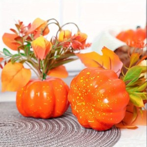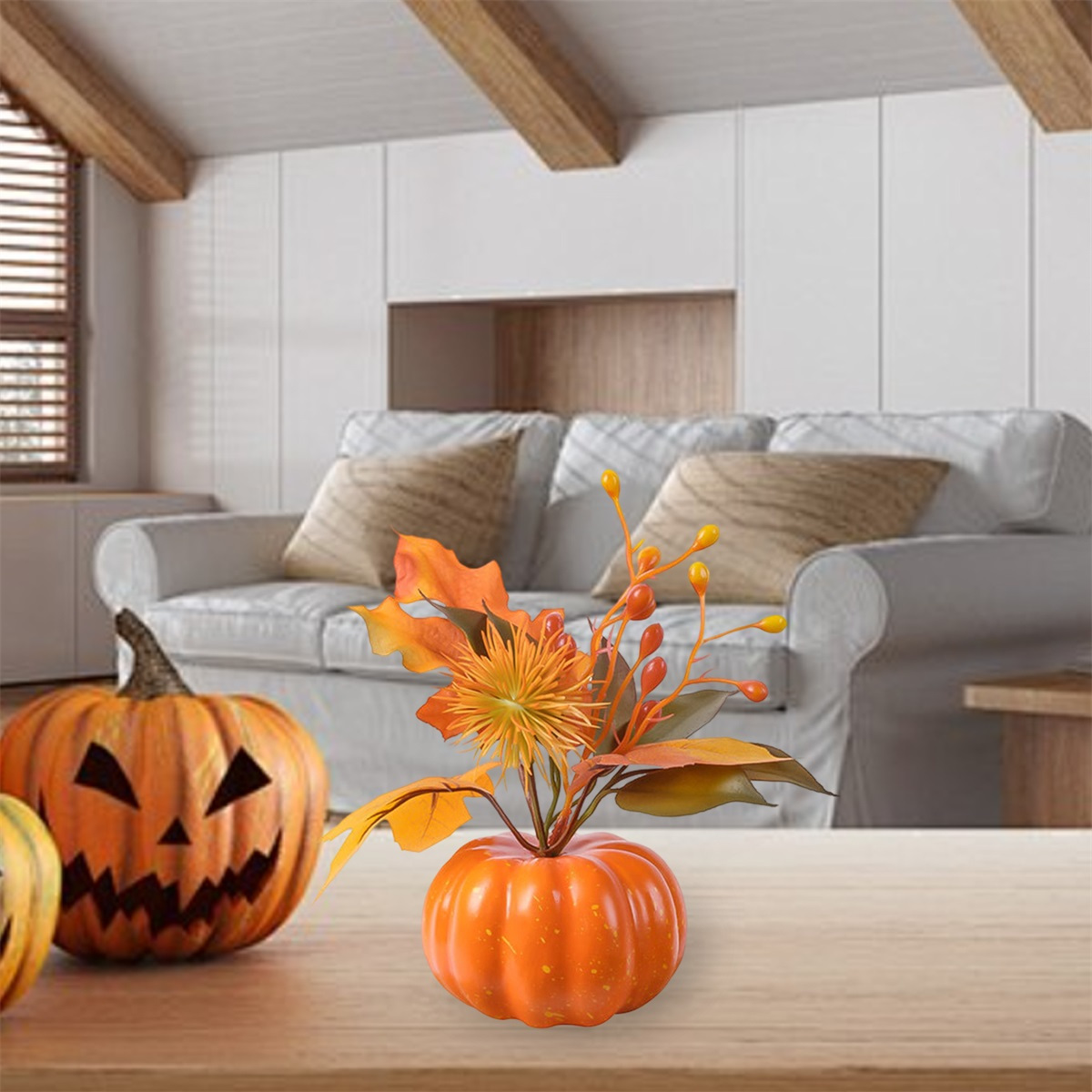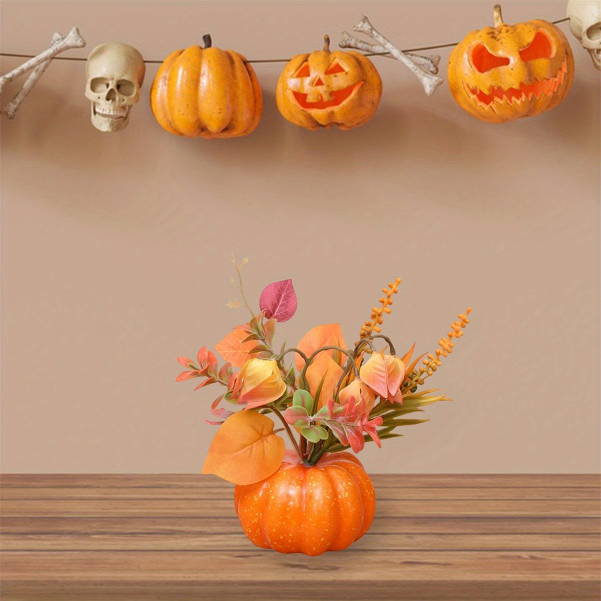 Halloween Artificial Pumpkin Decoration with Leaves Plants Party Table Centerpieces Decor