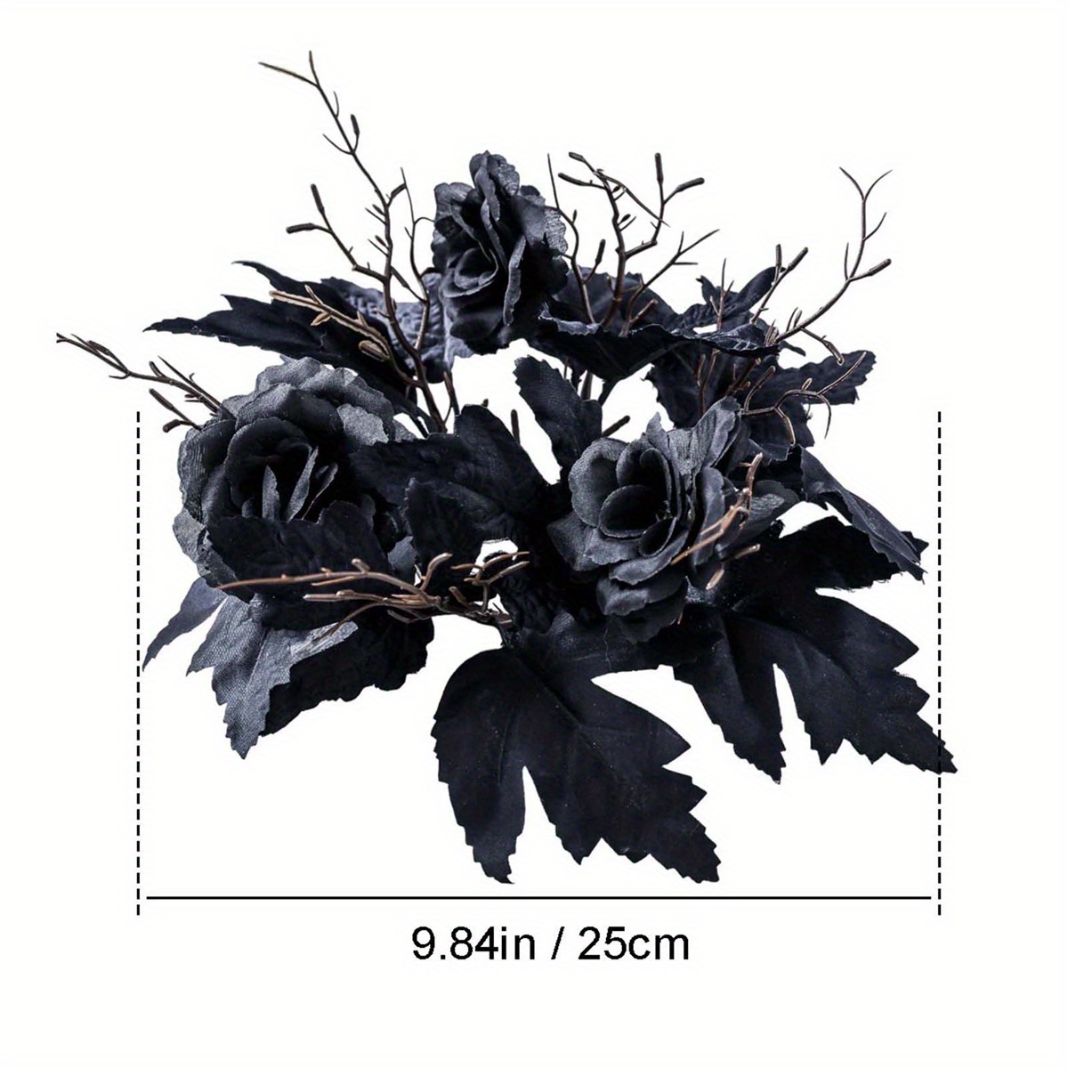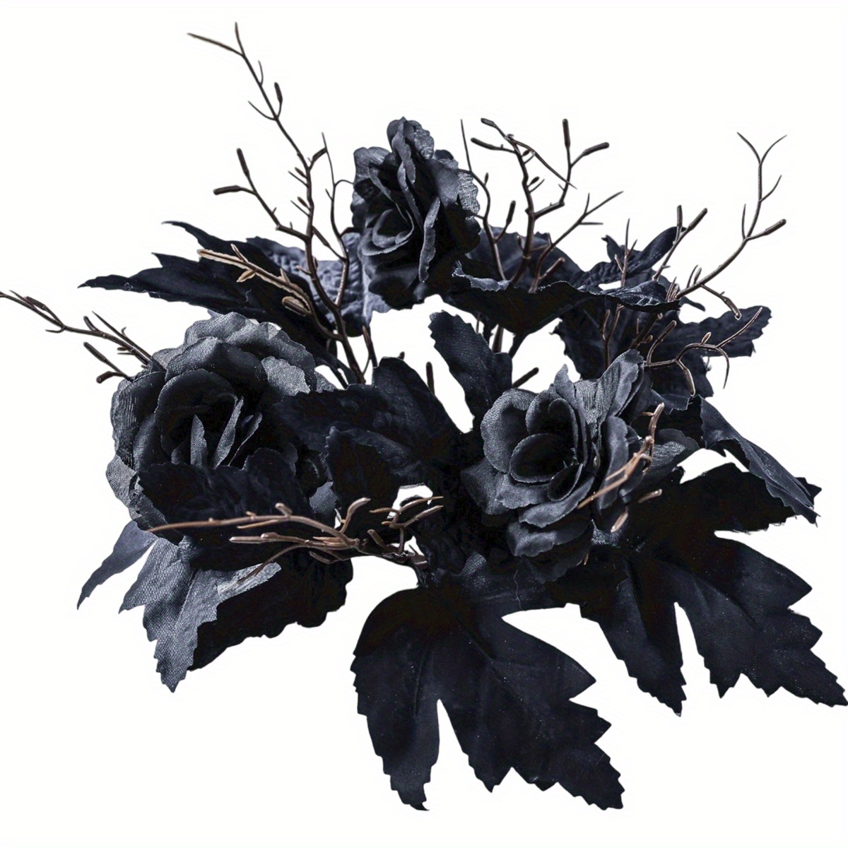 Halloween Black Rose Wreath Centerpiece – Gothic Candle Ring with Gold Frame for Home, Party, Wedding Décor