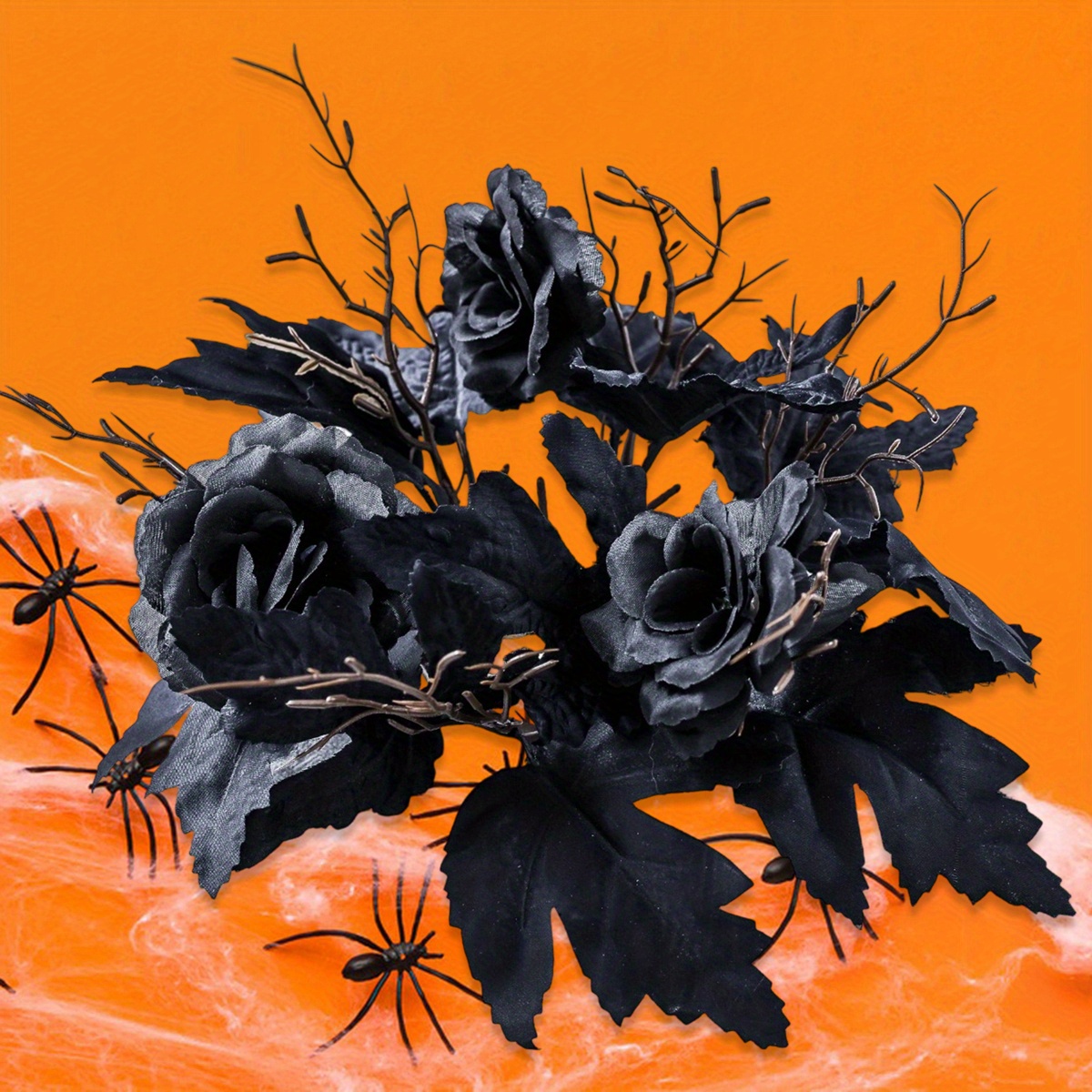 - Product Name: Halloween Black Rose Wreath Centerpiece – Gothic Candle Ring with Gold Frame for Home, Party, Wedding Décor