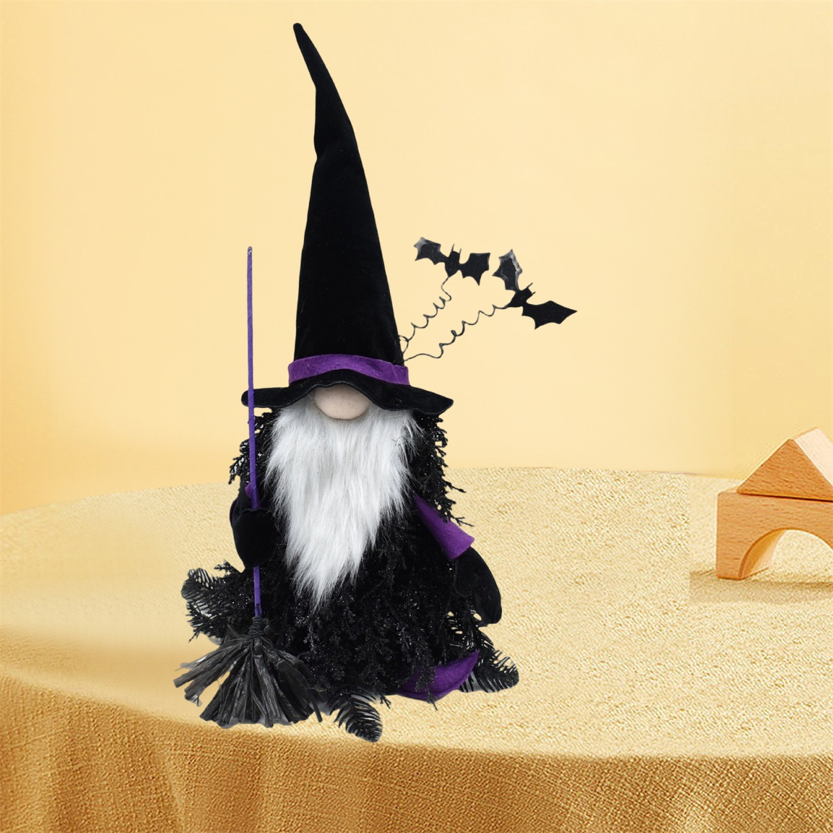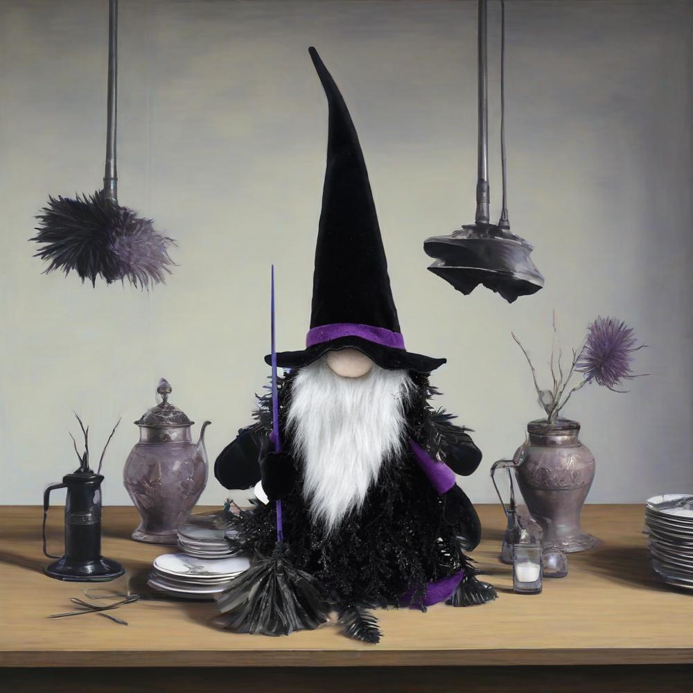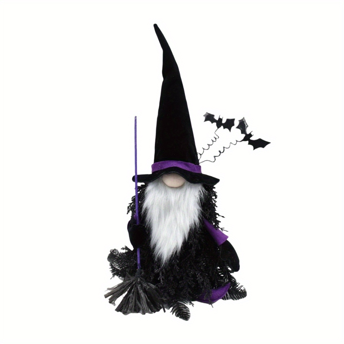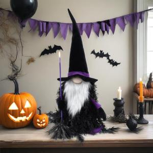 - Product Name: Handmade Halloween Tomte Gnome Figurine – Black & White Plush with Beard & Broomstick, Table or Home Décor