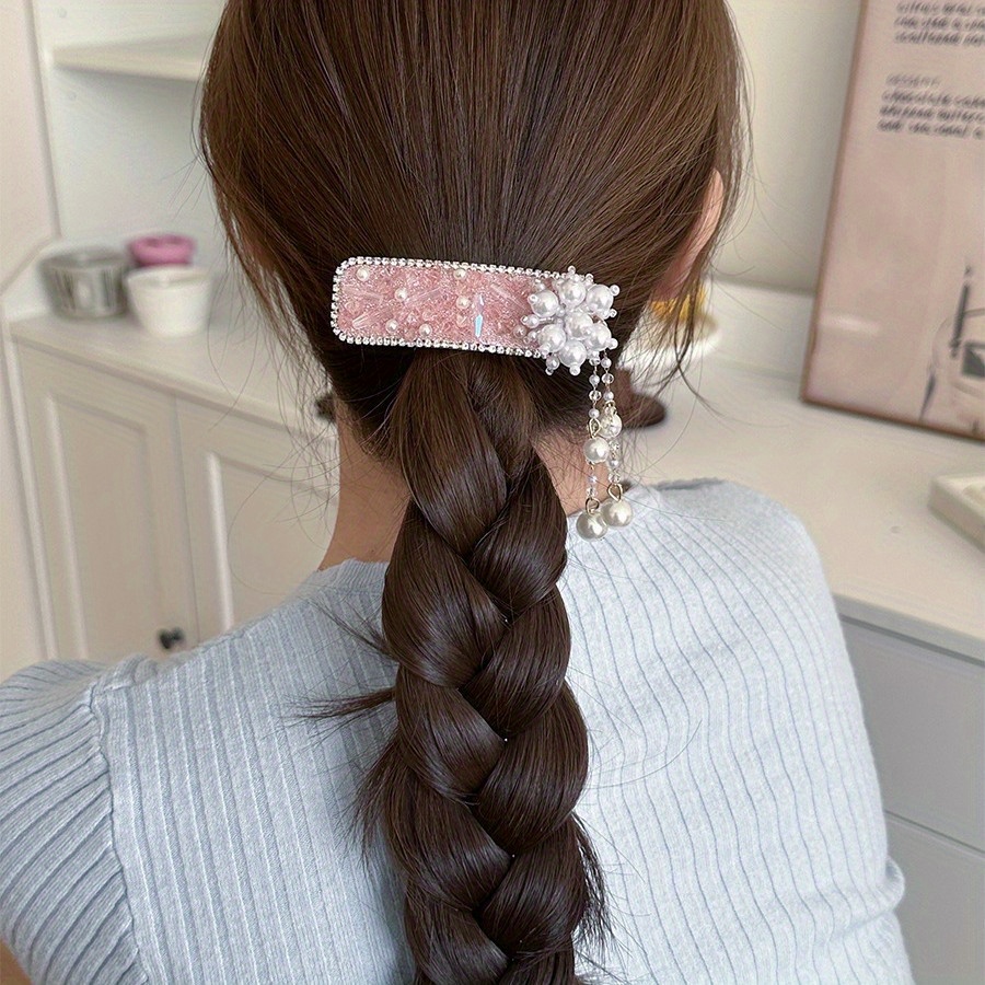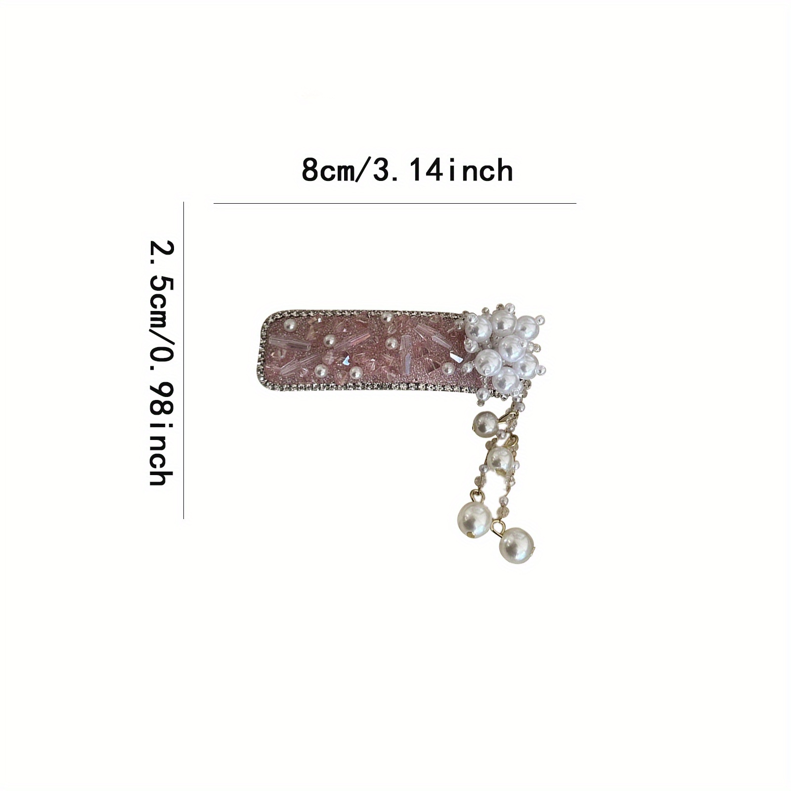 Heavy-Duty Full-Drilled Hair Clip with Side Chain - Elegant Floral-like Imitation Imitation Pearl, Wedding, Party, Everyday Hair - Vintage Chinese Hairpin in Pinkish-Purple Dark Gray-Black color schemes