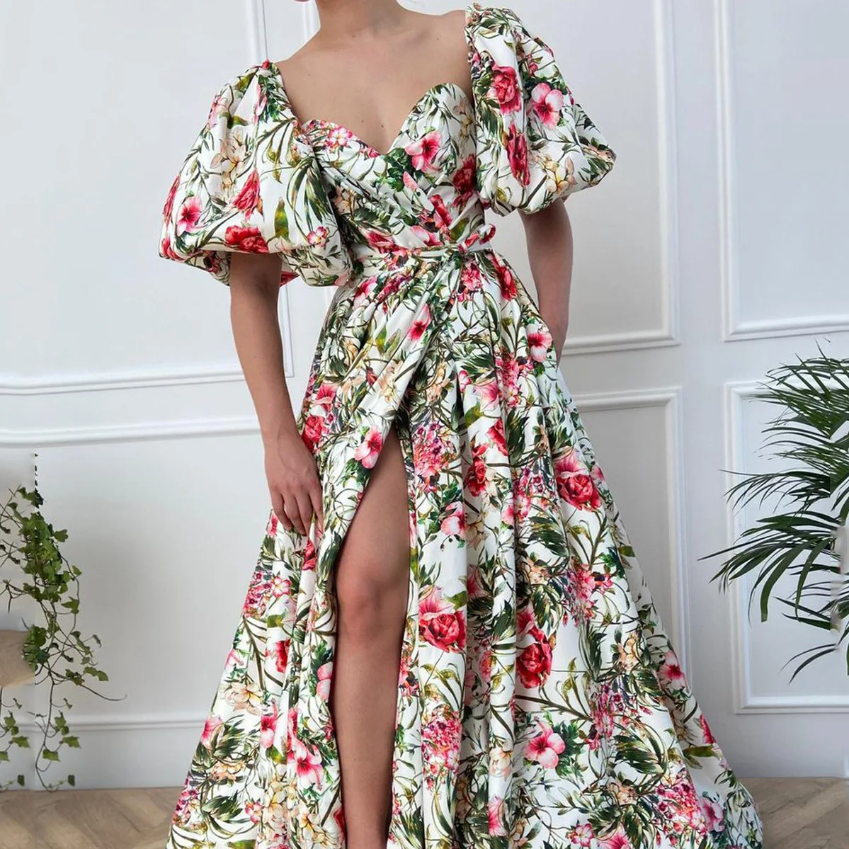 - Product Name: New Printed Boho Sexy Square Sleeve Belt Wedding Guest Dresses