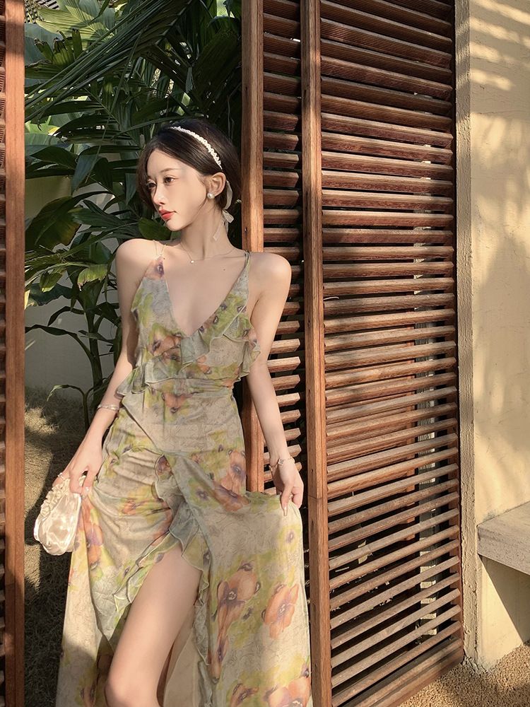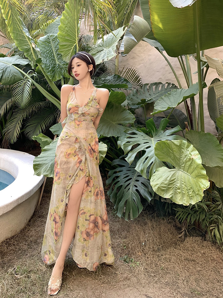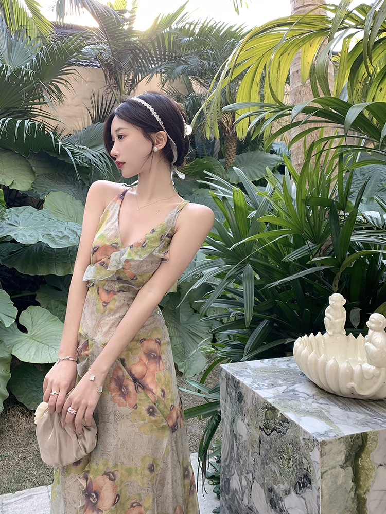 Fabric Name: Needle Silkstyle: sexypattern; patternStyle: suspenderskirt length: long skirtskirt type; irregular skirtWaist type: high waist