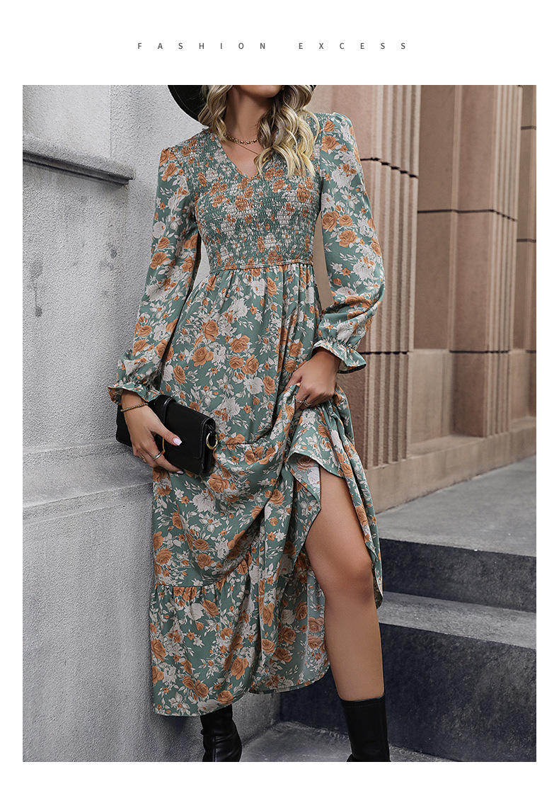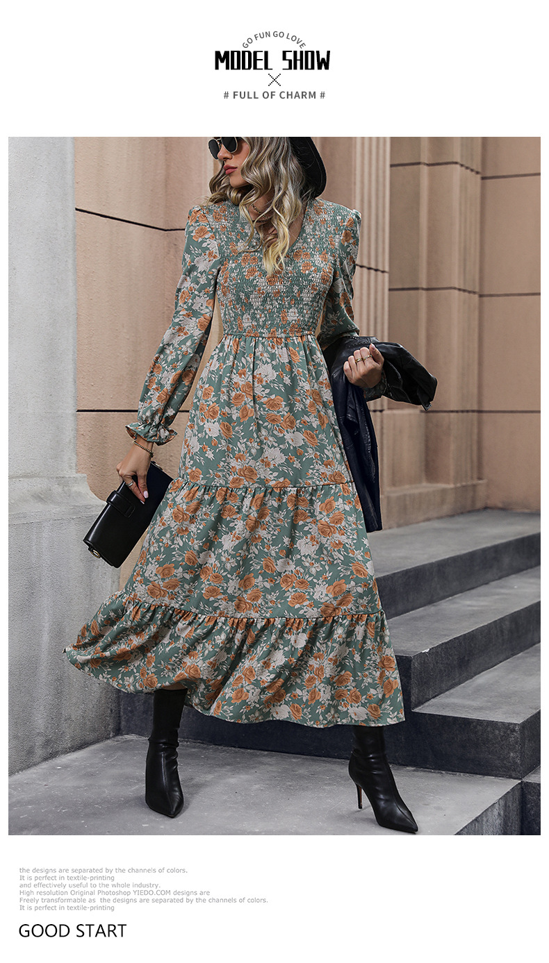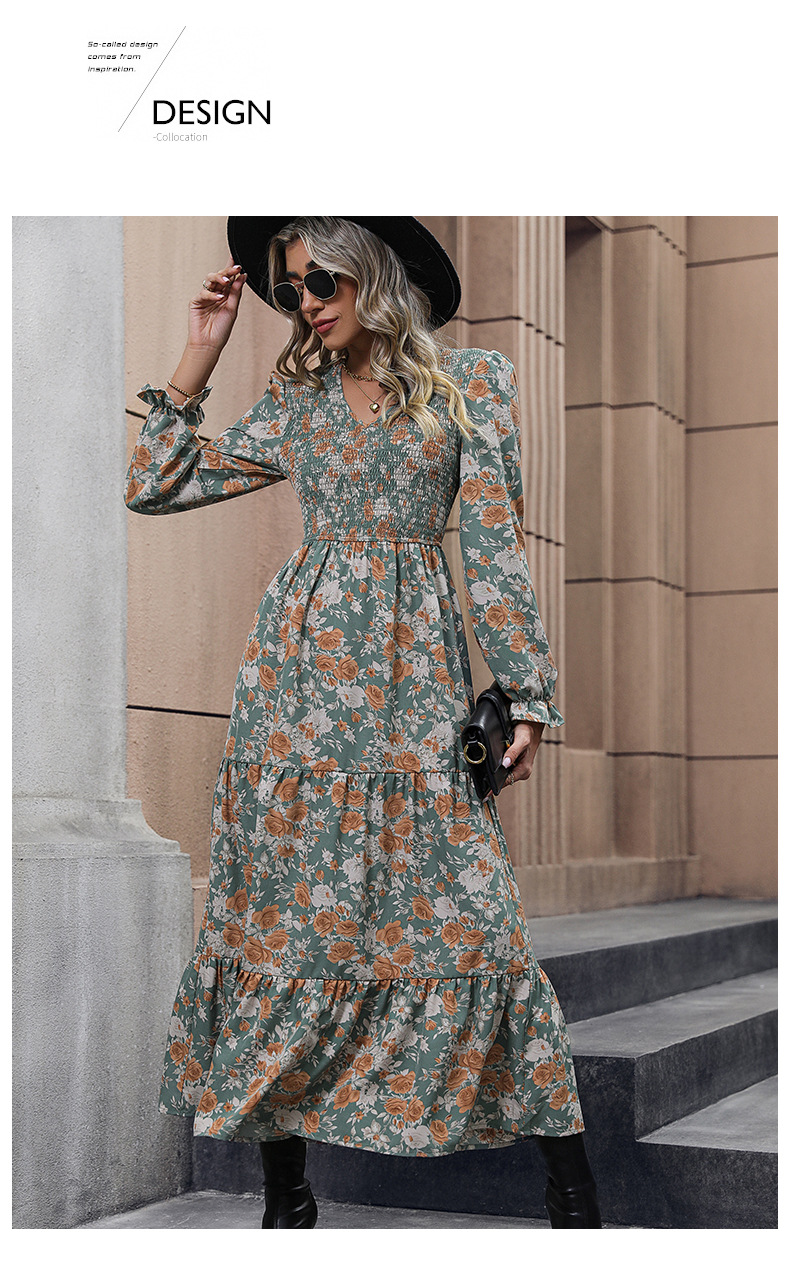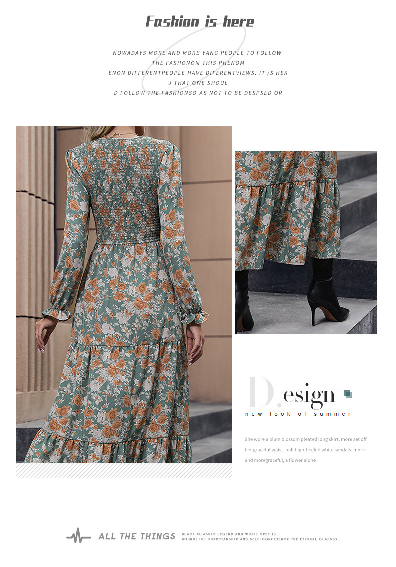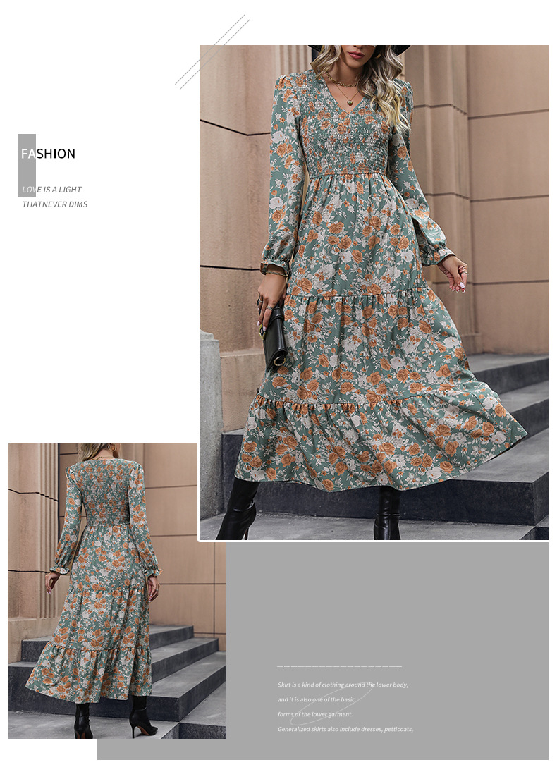 - Product Name: New Women's Fashion V-Neck Printed Dress