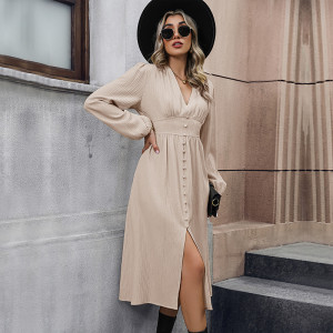 - Product Name: New Women's Solid Color Long Sleeve Split Midi Dress