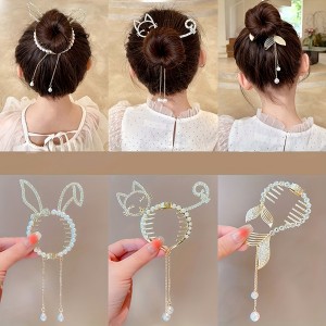 - Product Name: Rhinestone Faux Pearl Tassel Hair Clips, Cute Bunny Cat Wings Ponytail Clips, Princess Decorative Hair Accessories, Birthday Holiday Gifts For Baby Girls
