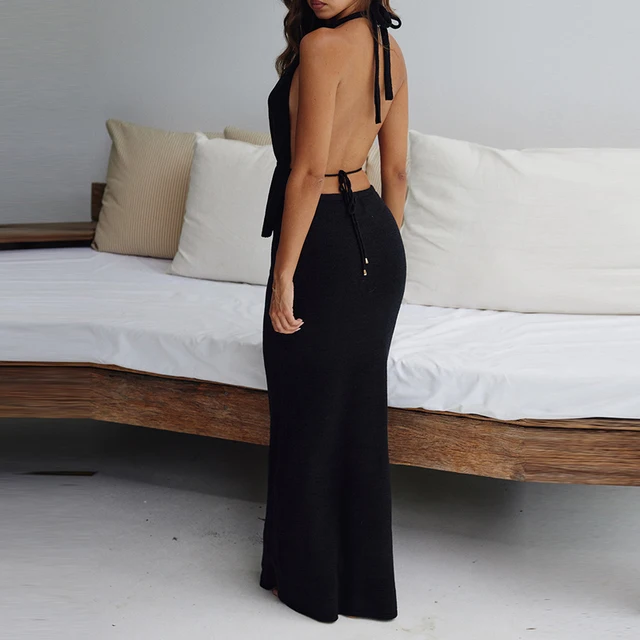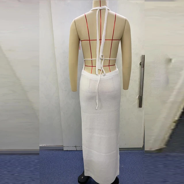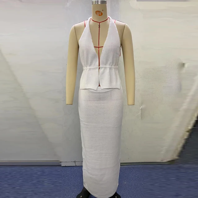 - Product Name: Sexy Low Cut Backless Sleeveless Tops Half Skirts Matching Sets Fashion Design Style Solid Color 2pc Sets Elegant Lady Slim Sets