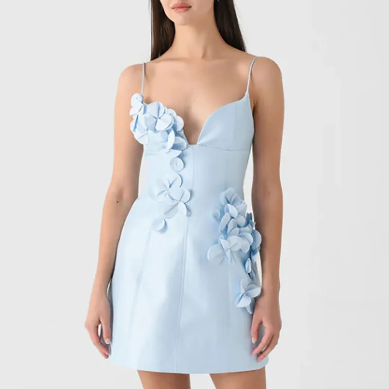 Home>Women's Clothing>Women's Dresses>Mini Dresses>Sexy Low Cut V Neck High Waist Party Dress Fashion Backless Slim Fit A-line Dresses Blue Flower Patchwork Camisole Women Dress