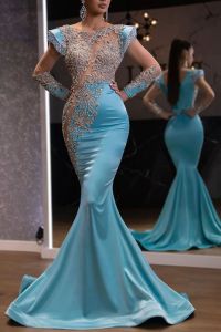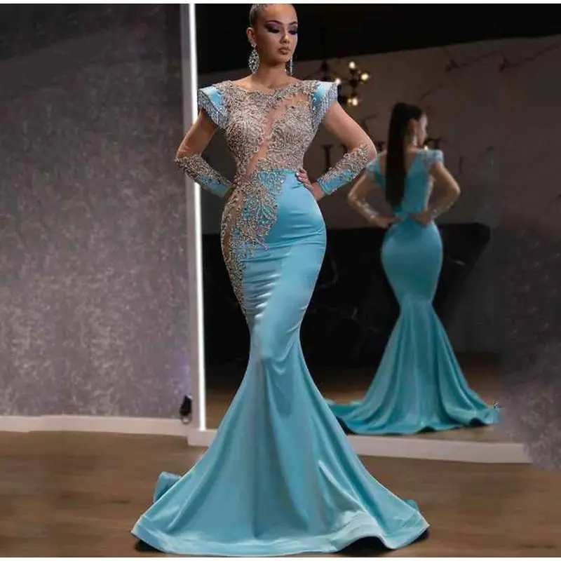 Sexy Mesh Sequin Mermaid Long Sleeve Fringe Round Neck Party Wedding Guest Dress