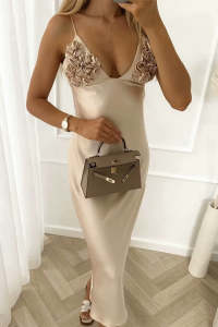 - Tag: V Neck , Sleeveless , Satin , Solid Color , Patchwork , Regular , Long , Sexy , Spaghetti Strap , Flowers , Sling