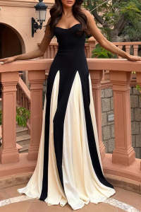 Sexy Solid Contrast V Neck Sling Dresses