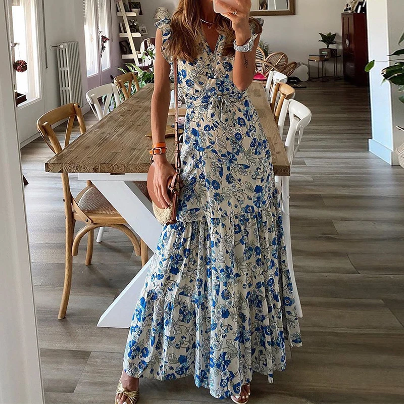 Sexy Women V Neck Party Vintage Print Boho Elegant Fashion Wedding Guest Dresses