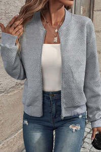 - Product Name: Solid Color Zippered Round Neck Long Sleeve Casual Jacket