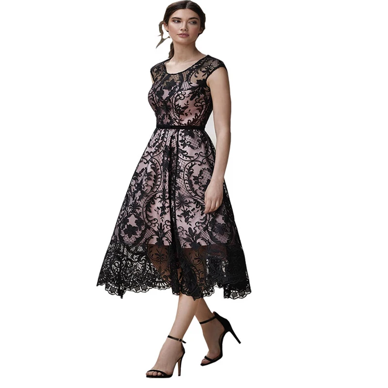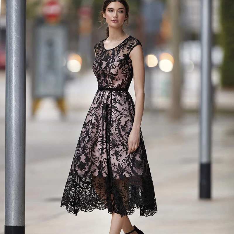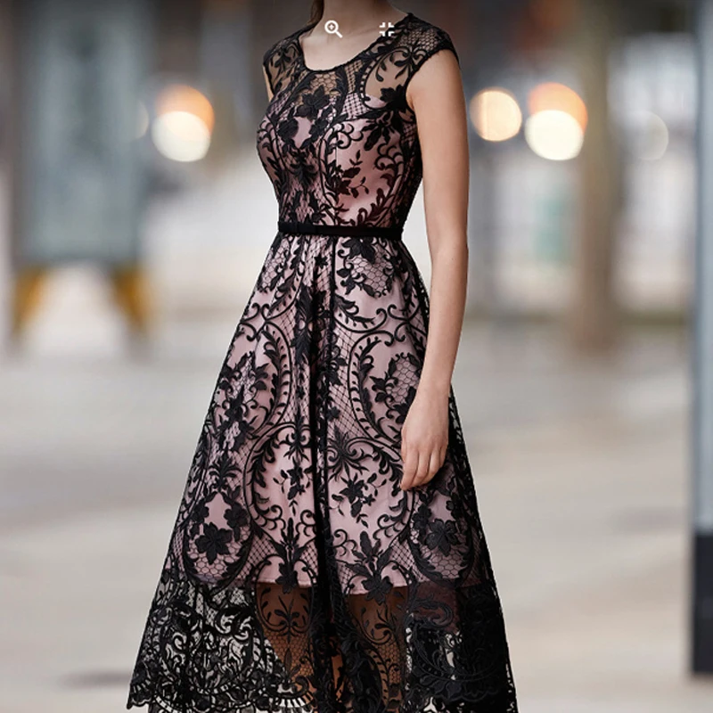 - Product Name: Summer Elegant Printed O-Neck Sleeveless Sexy Casual Party Lace Wedding Guest Dress
