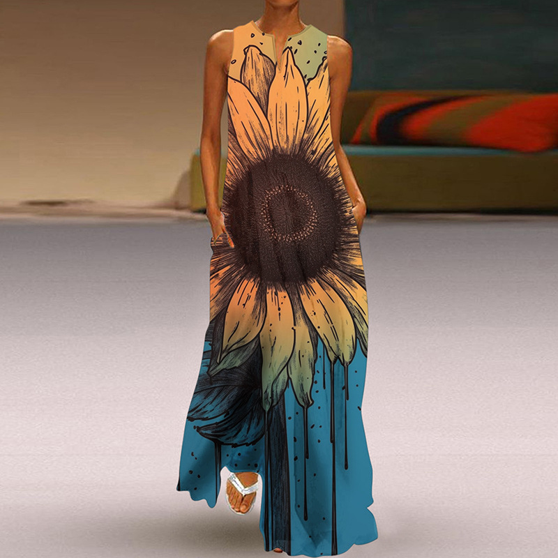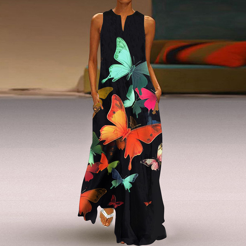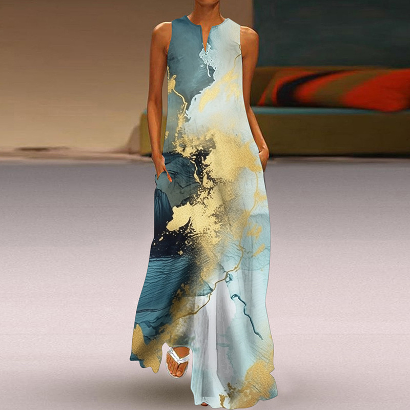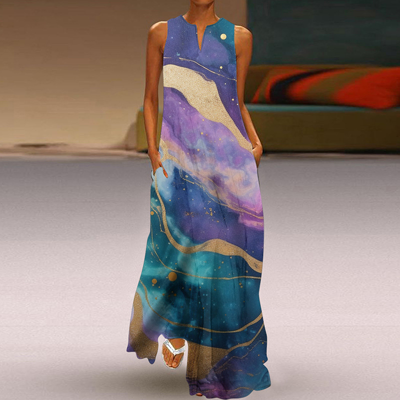 - Tag: Maxi Dresses , V-neck , Sleeveless , Printed